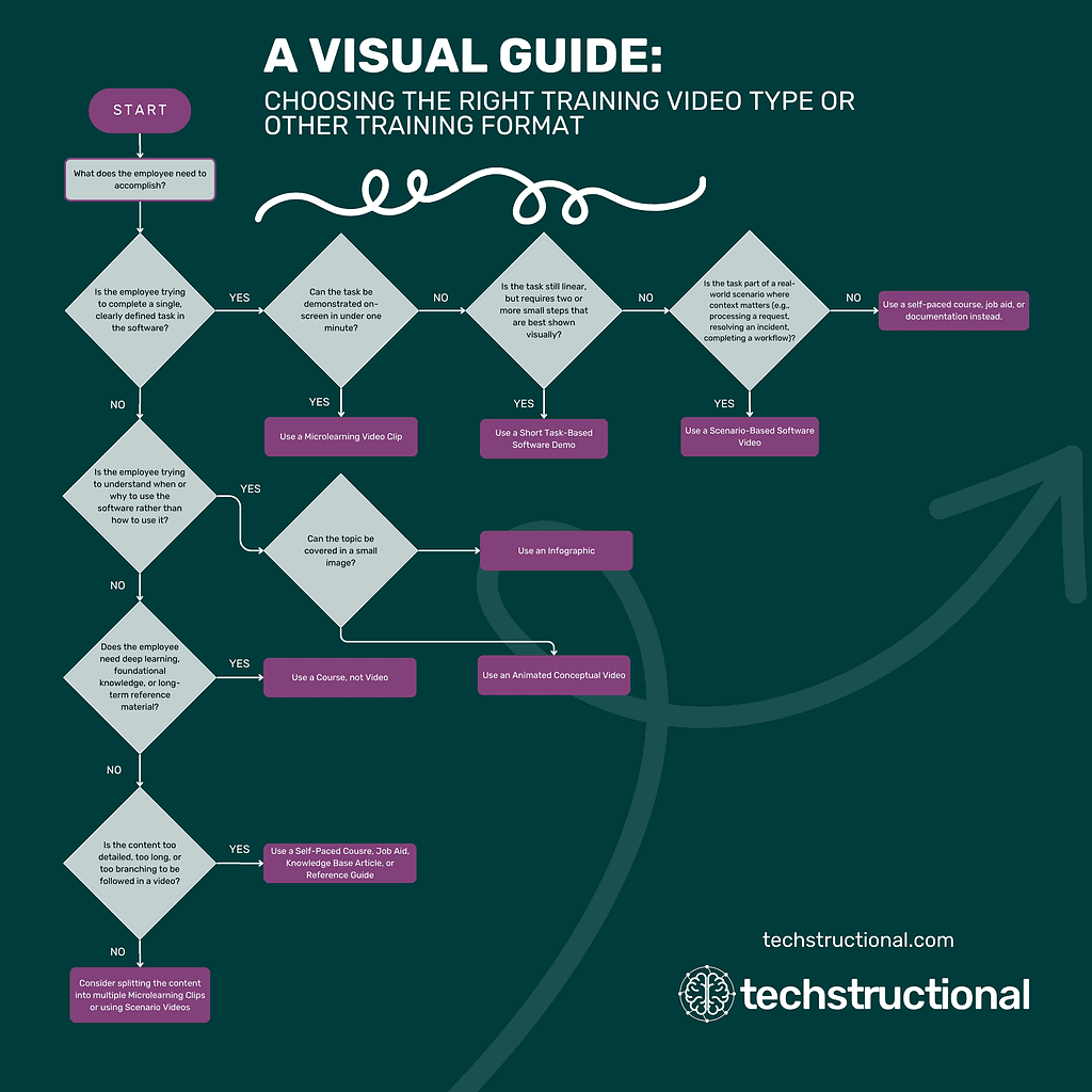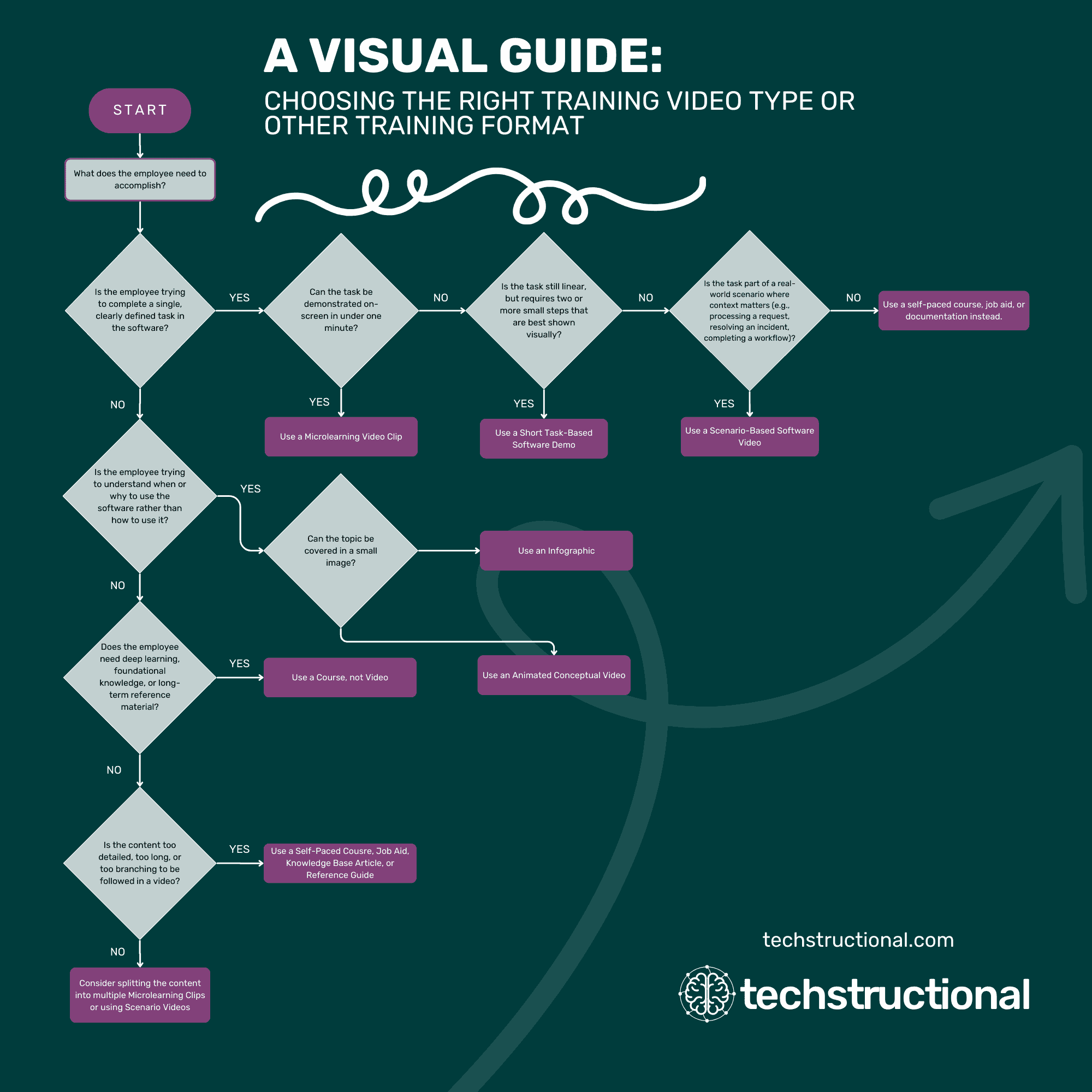 Need help choosing the right training video (or other training format) for the job? We got you covered with this helpful flowchart to help you decide.